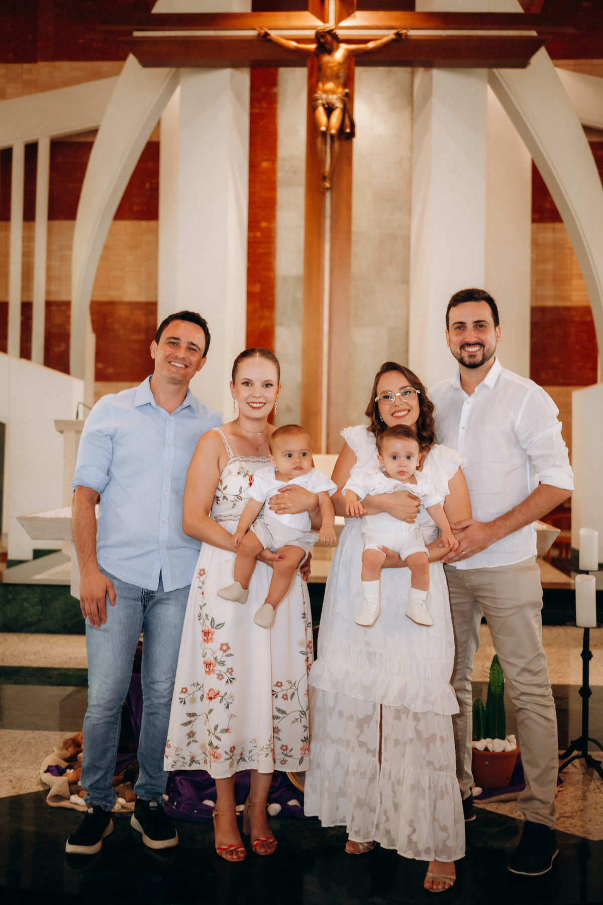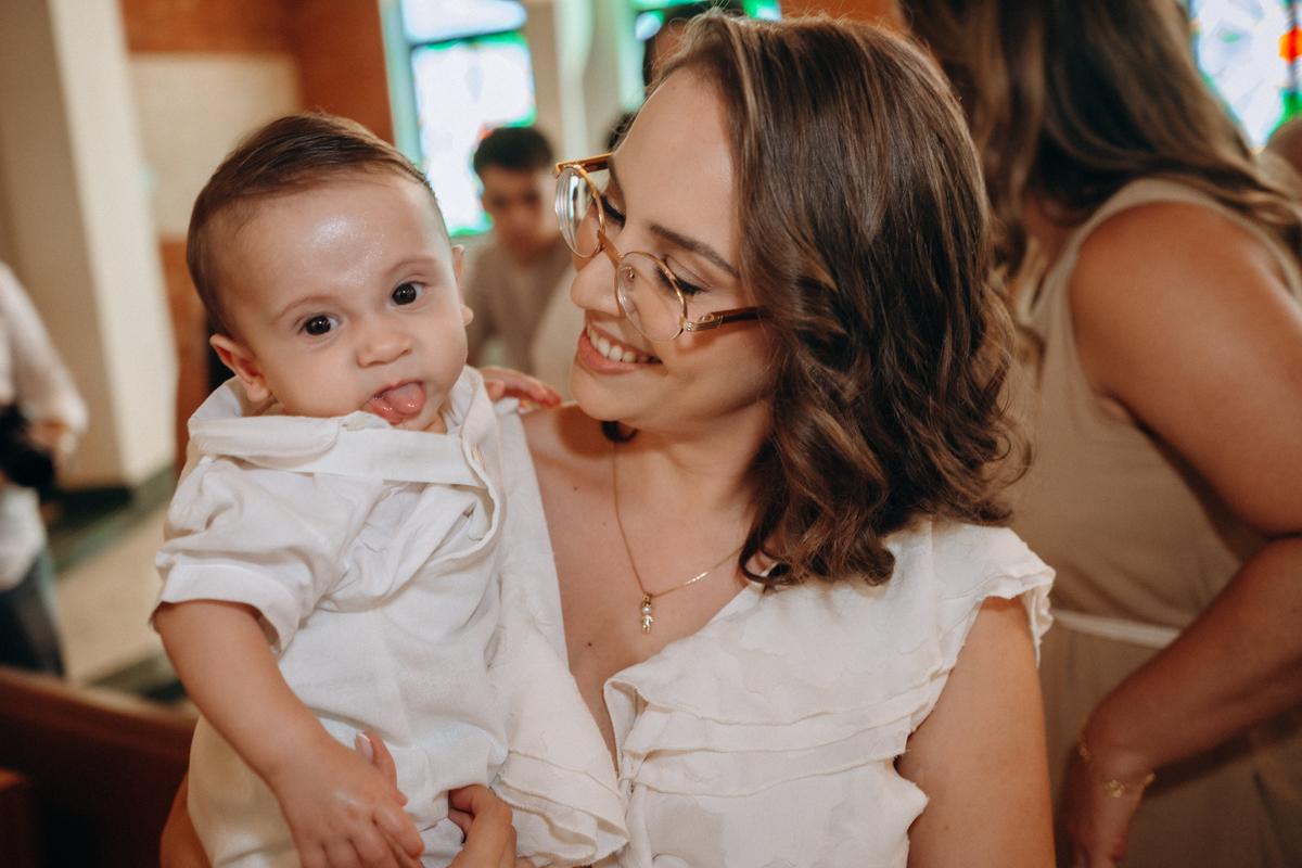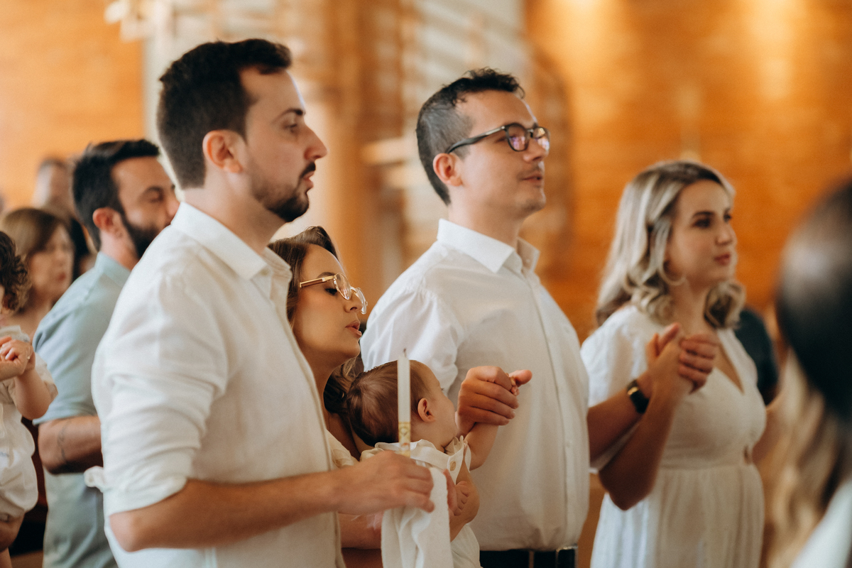 Desde os primeiros momentos na igreja, era possível sentir a alegria da família. O Júlio, tão pequeno e já tão amado, foi apresentado diante de Deus em um momento delicado e cheio de simbolismo. Cada detalhe do batizado — o olhar emocionado dos pais, o carinho dos padrinhos e a presença da família — tornou essa celebração ainda mais especial.