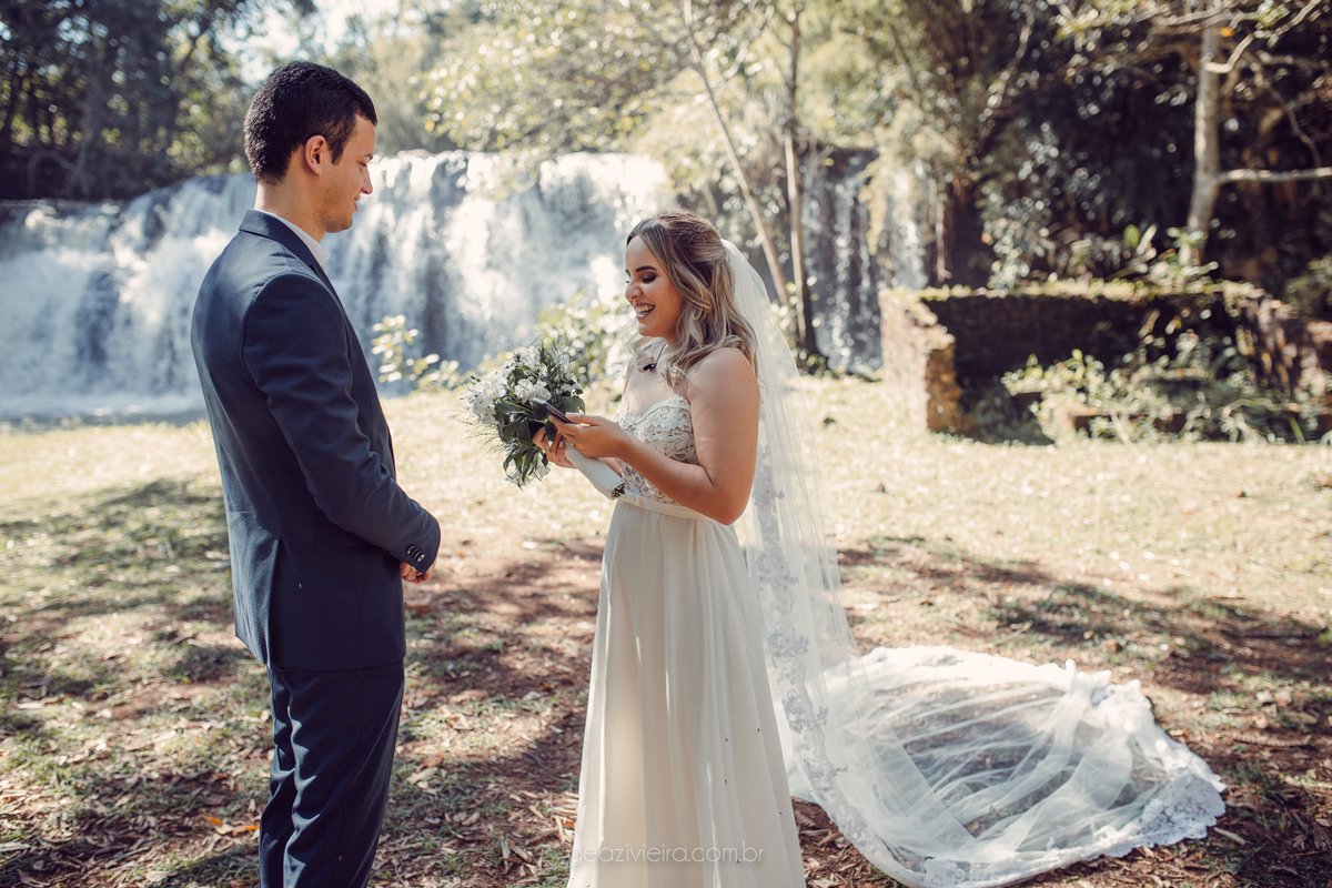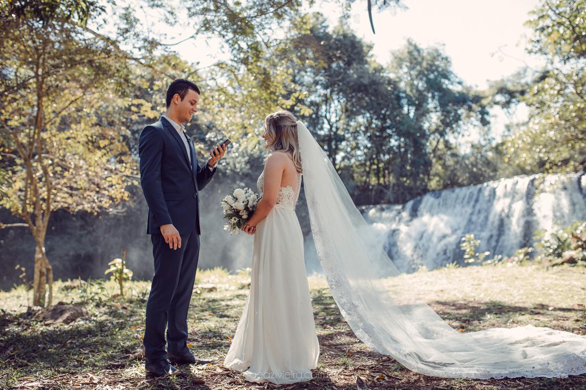 Fomos para um lugar lindo, uma cachoeira no interior de São Paulo e foi ali que eles falaram seus votos um pro outro e se emocionaram muito!!