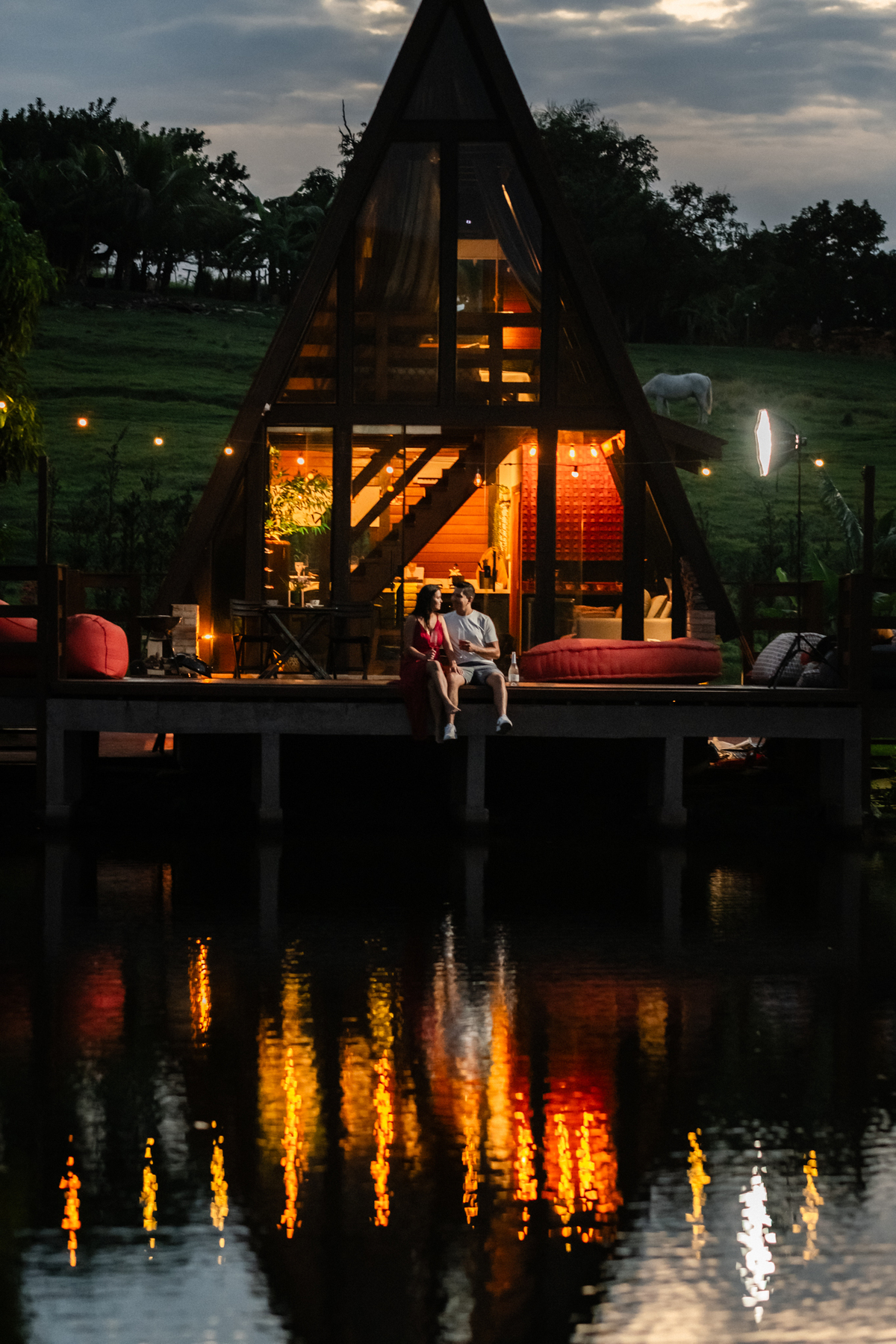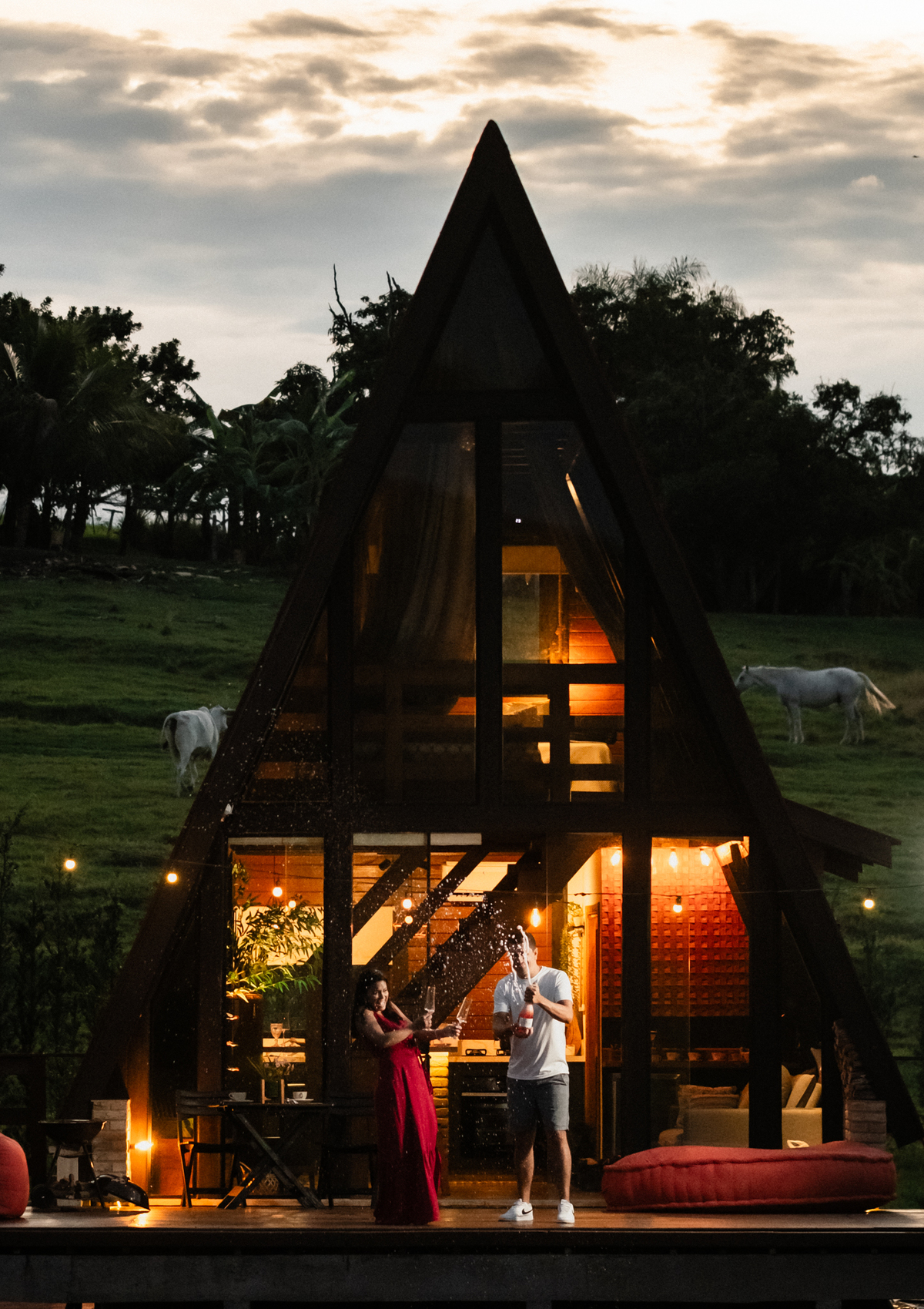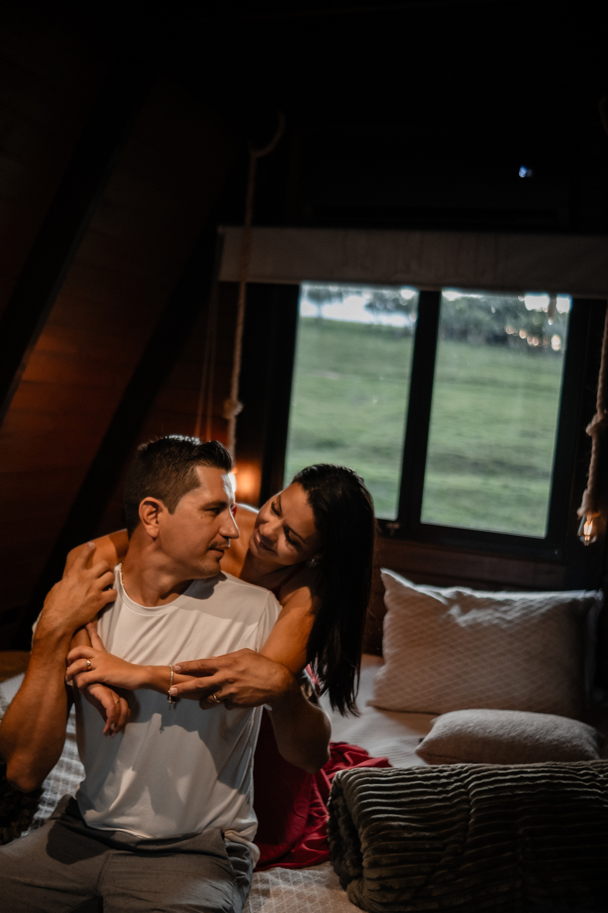 Com um cenário aconchegante, cercado pela natureza e com uma atmosfera romântica e intimista, o local trouxe ainda mais verdade e leveza para cada registro. Cada olhar, cada abraço e cada sorriso espontâneo contou um pouco da história desse casal, mostrando que o amor está nos detalhes e na conexão que existe entre duas pessoas.