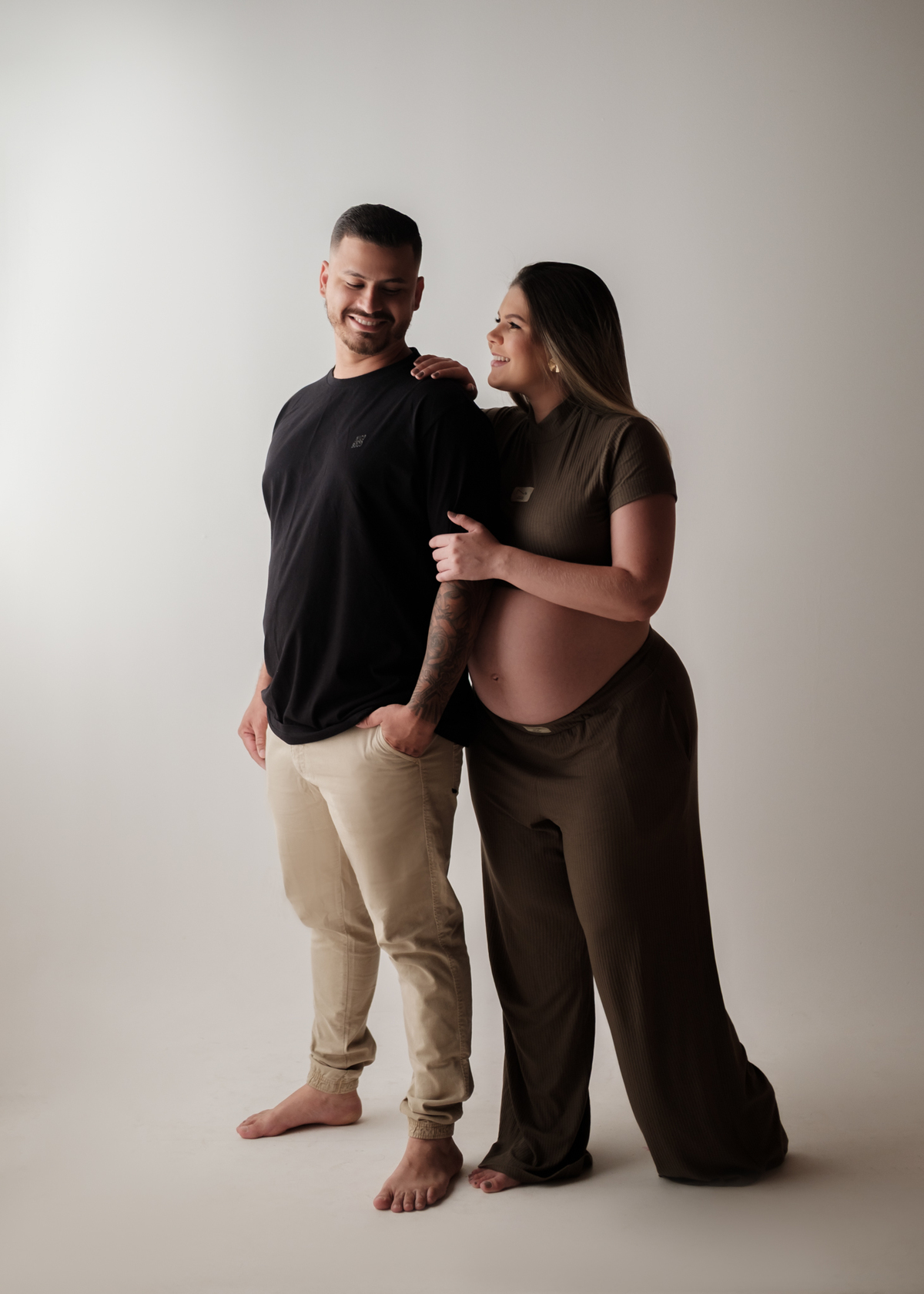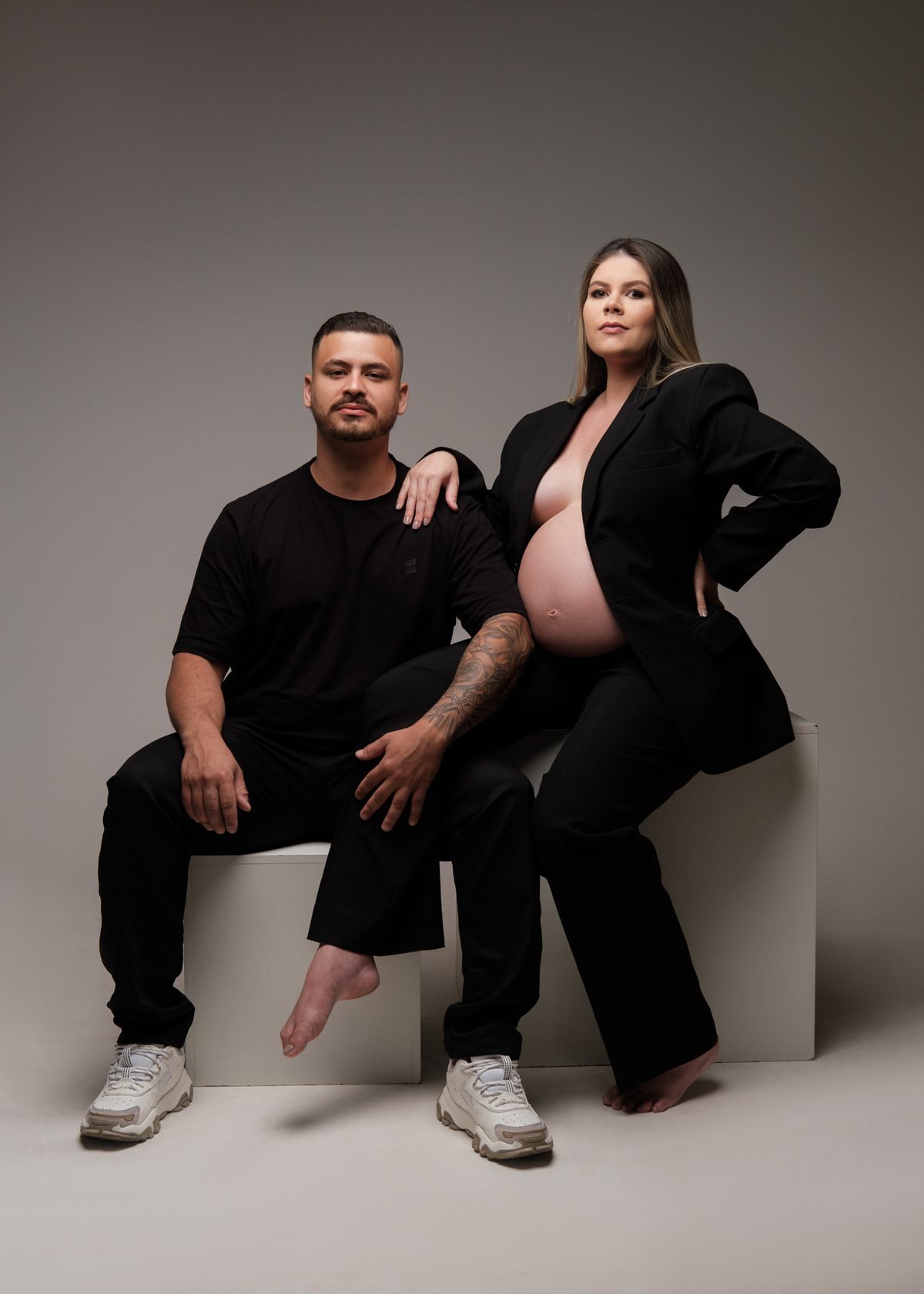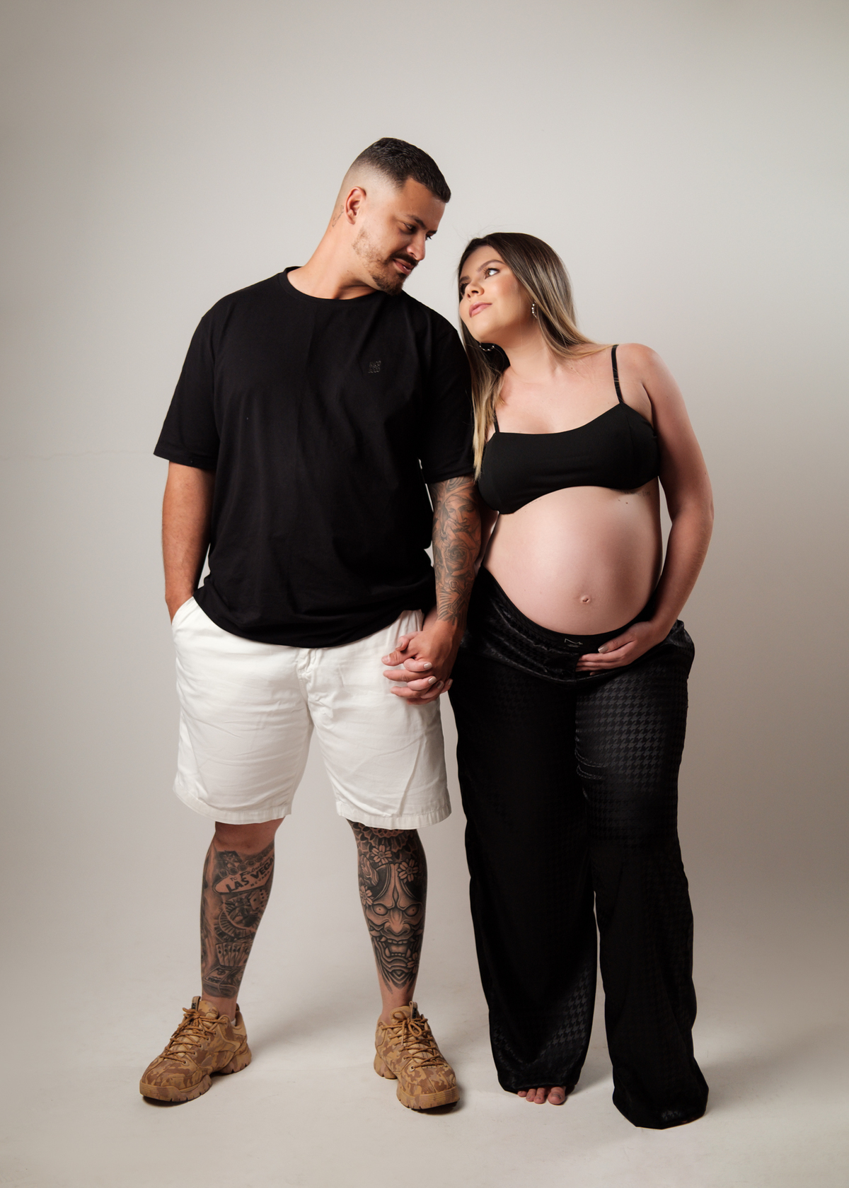 O ensaio foi marcado por uma atmosfera intimista e elegante, onde cada detalhe valorizou a beleza natural da maternidade e o vínculo entre o casal. Entre olhares apaixonados, gestos delicados e sorrisos cheios de significado, foi possível eternizar a essência dessa fase tão única e cheia de emoção.