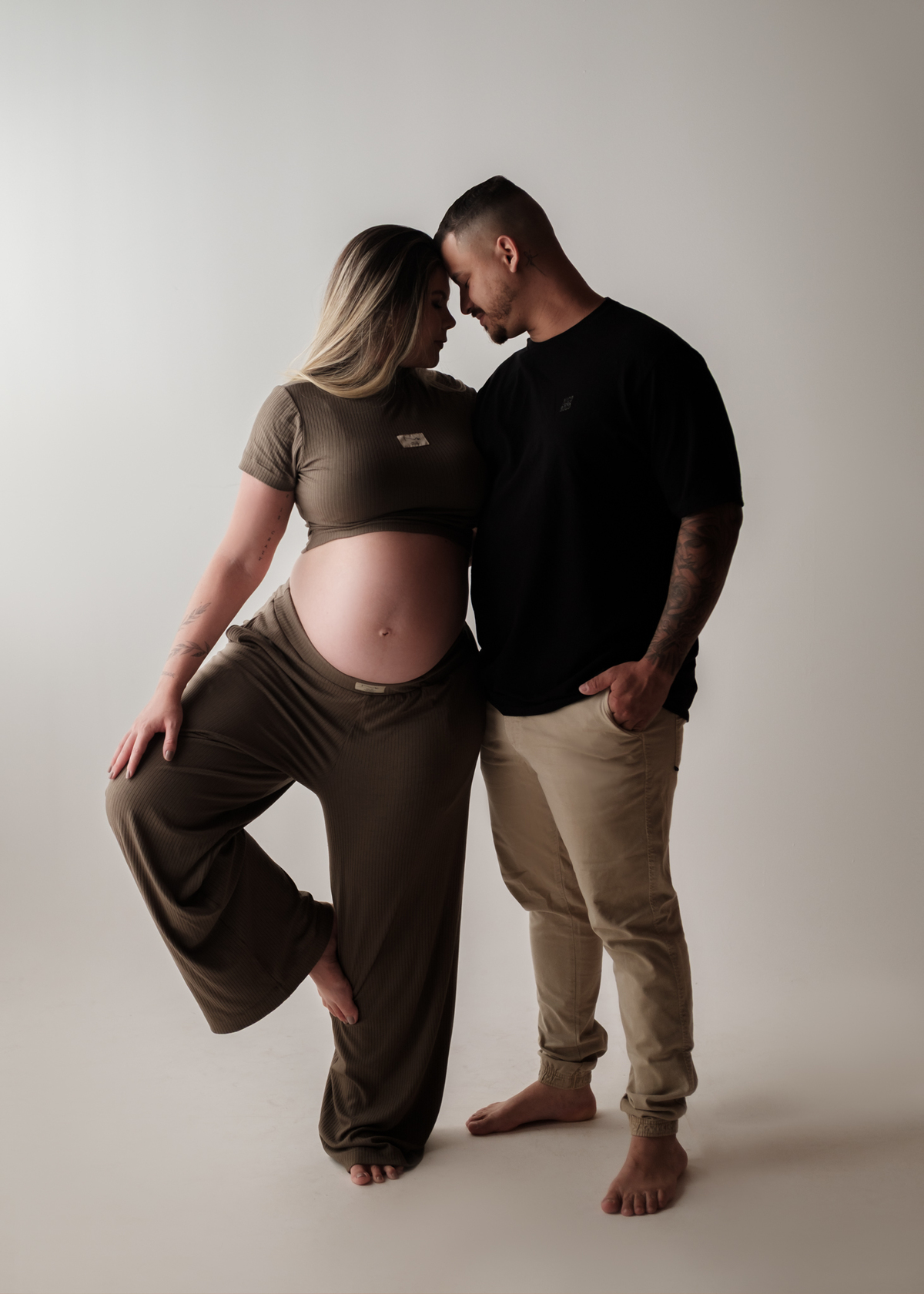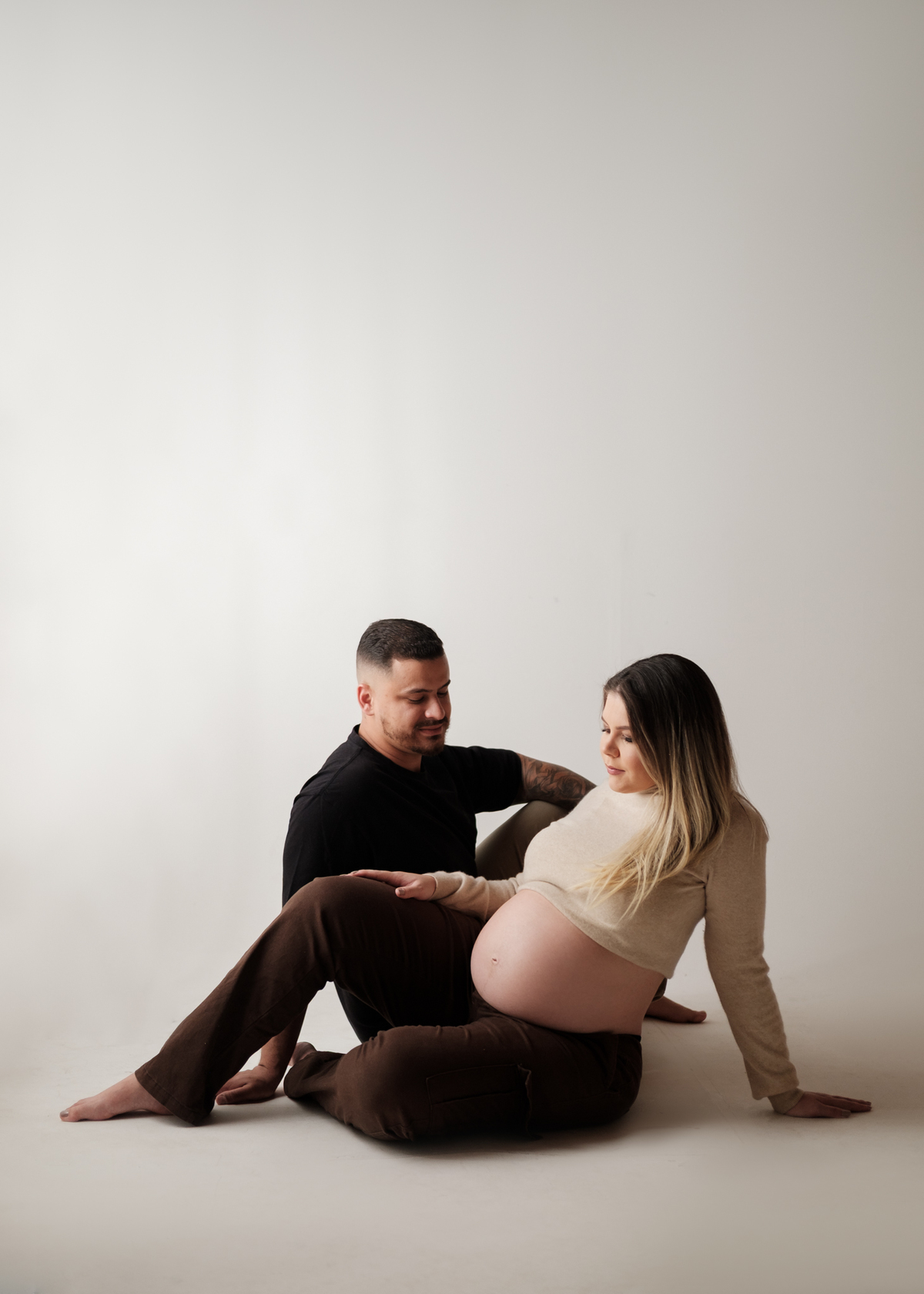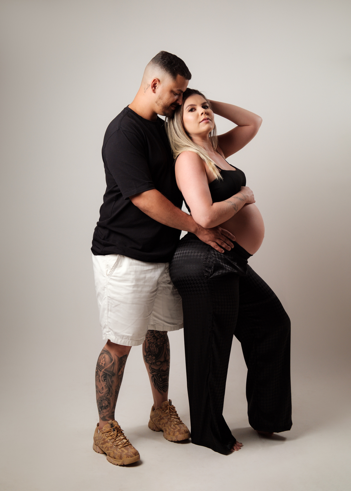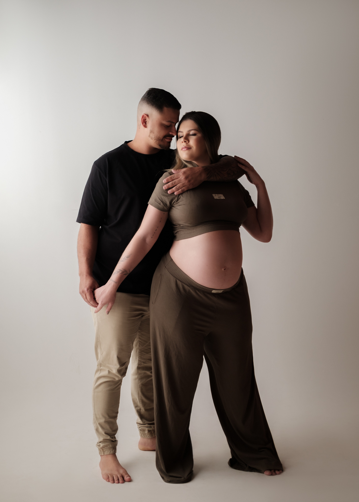 O ensaio foi marcado por uma atmosfera intimista e elegante, onde cada detalhe valorizou a beleza natural da maternidade e o vínculo entre o casal. Entre olhares apaixonados, gestos delicados e sorrisos cheios de significado, foi possível eternizar a essência dessa fase tão única e cheia de emoção.