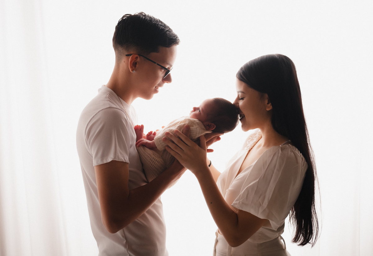 O ensaio foi realizado em estúdio preparado especialmente para fotografia newborn, com ambiente aquecido, tranquilo e pensado para proporcionar uma experiência segura e agradável para a família.