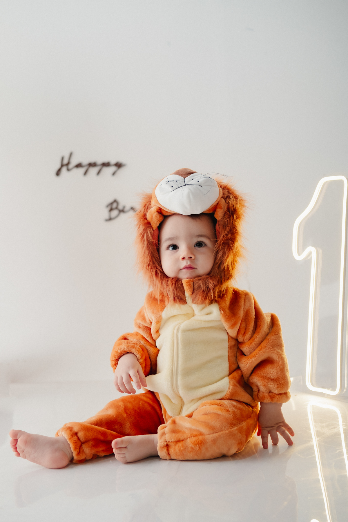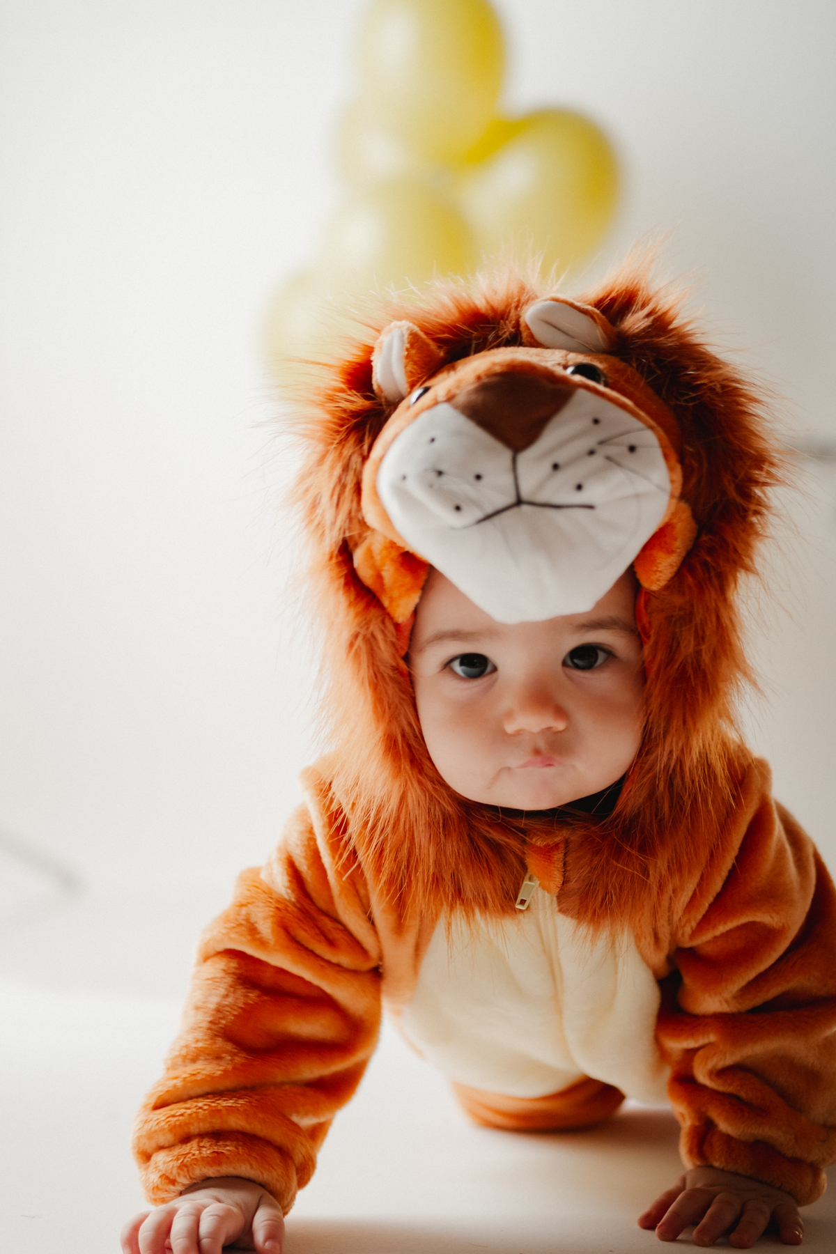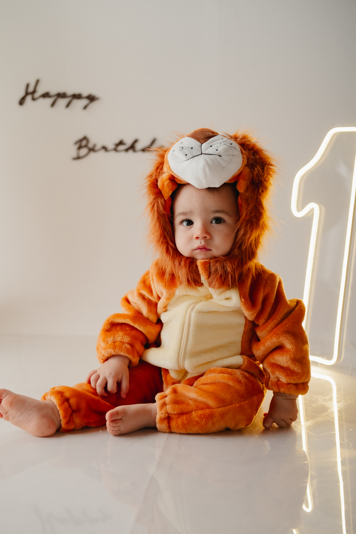 O segundo tema foi inspirado no clássico Rei Leão, trazendo uma atmosfera lúdica e cheia de fofura. Noah apareceu com uma fantasia de leão, em um cenário delicado com balões e elementos que remetem à natureza, perfeito para quem busca ideias criativas para festa de 1 ano tema Rei Leão.