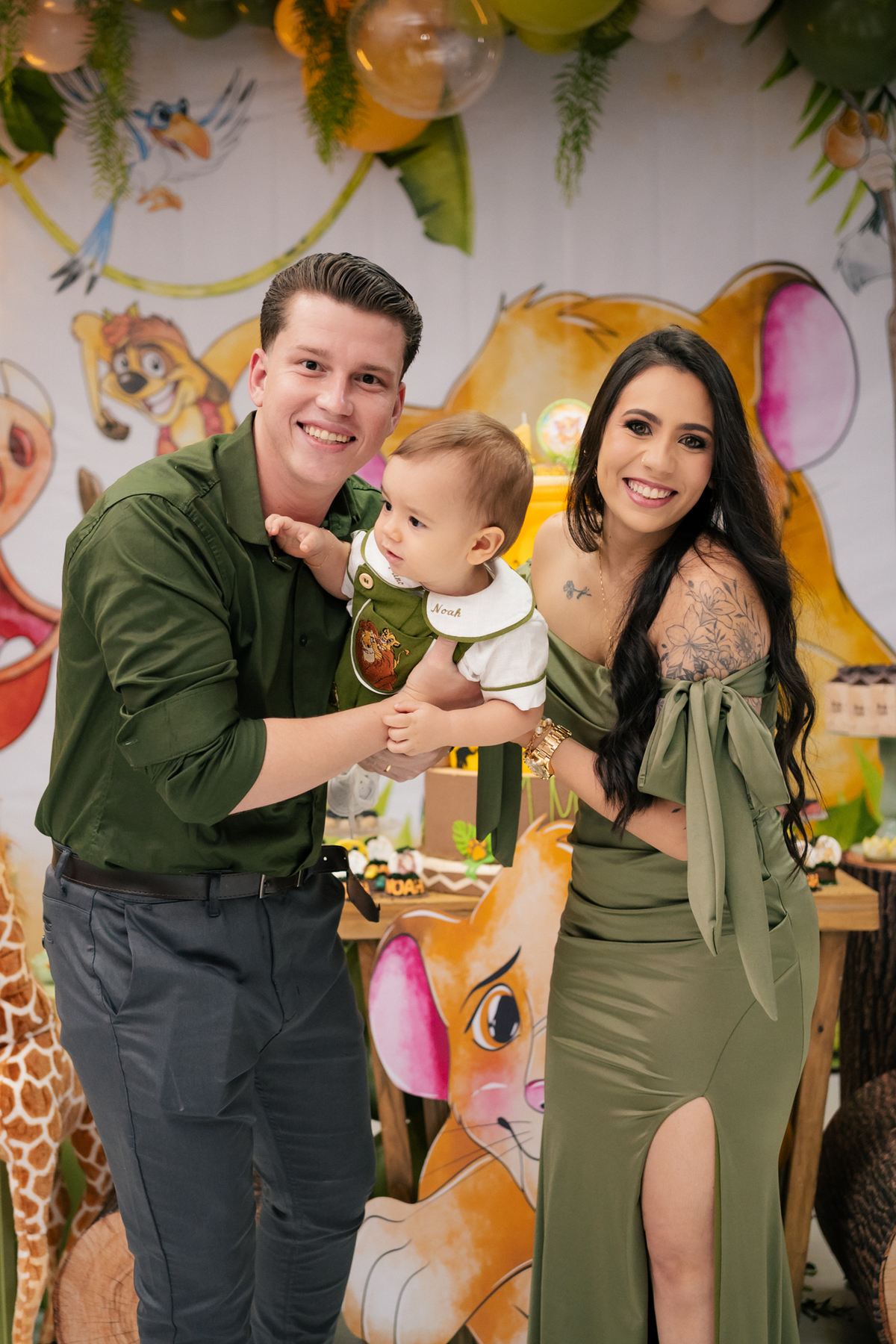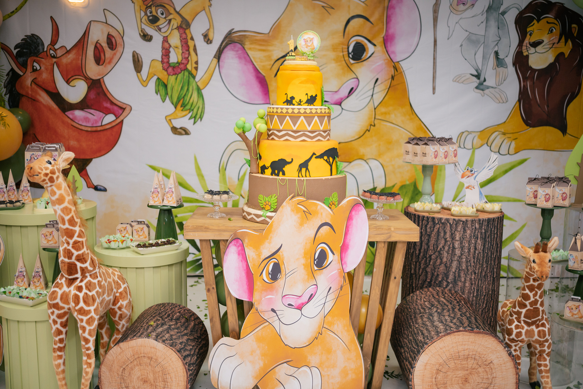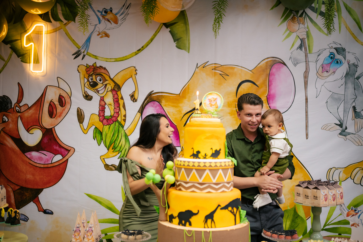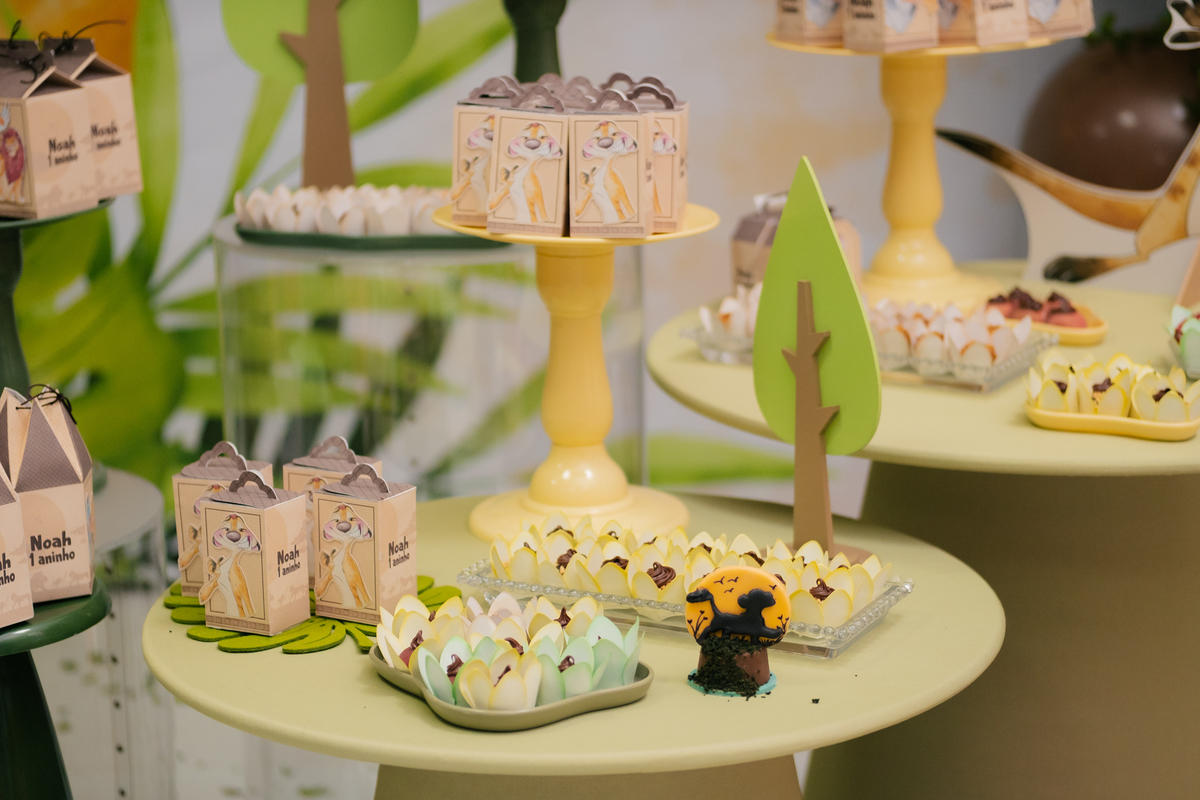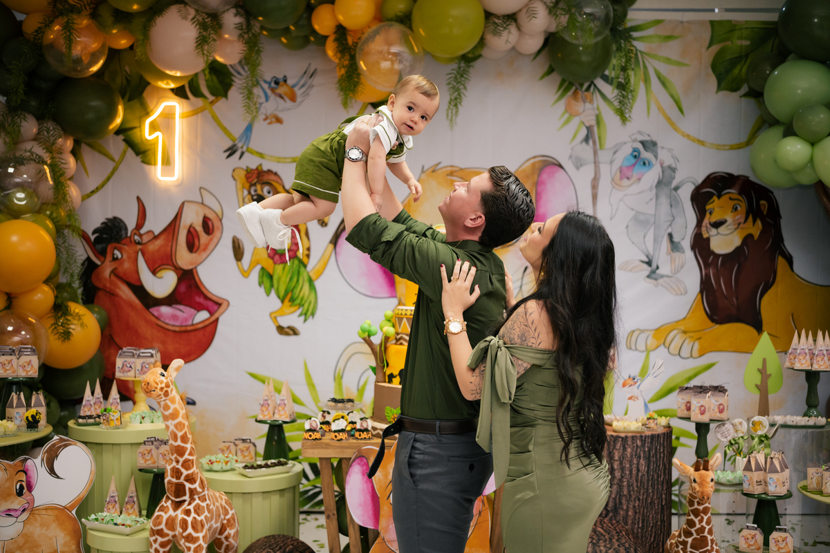 A decoração trouxe o tema Rei Leão, criando um ambiente lúdico e cheio de personalidade para comemorar o primeiro aniversário do Noah. Cada detalhe foi pensado com muito amor, transformando a festa em um verdadeiro cenário de alegria, cores e diversão para as crianças.